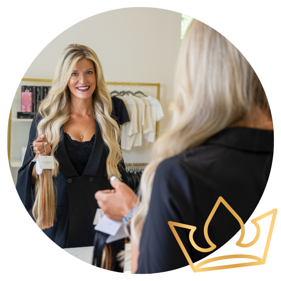 At Crown & Co. Extensions, we believe in beauty that gives back. That’s why 5% of every purchase supports the Haute Mama Collective, an organization helping mothers in need with financial, emotional, and community resources.
