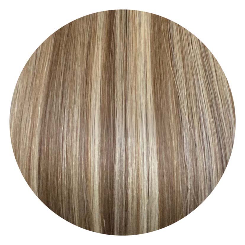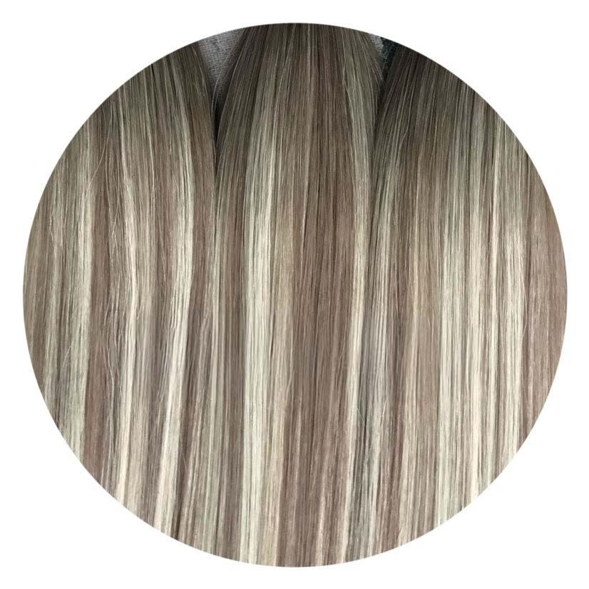 We offer premium Genius Wefts in Rooted, Blonde, Brunette, and Red Blends, made with Ethically Sourced, 100% Remy hair (cuticle-intact).